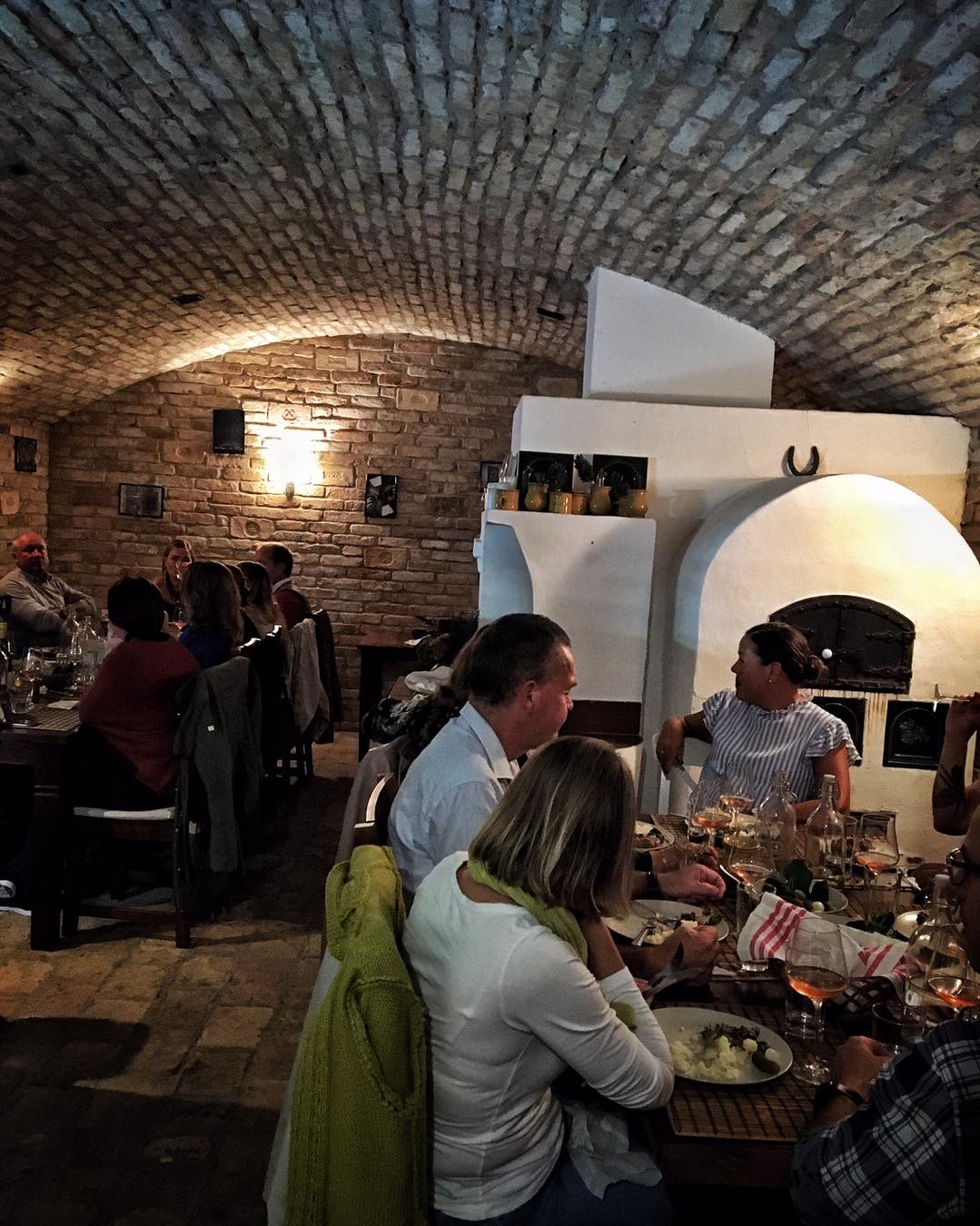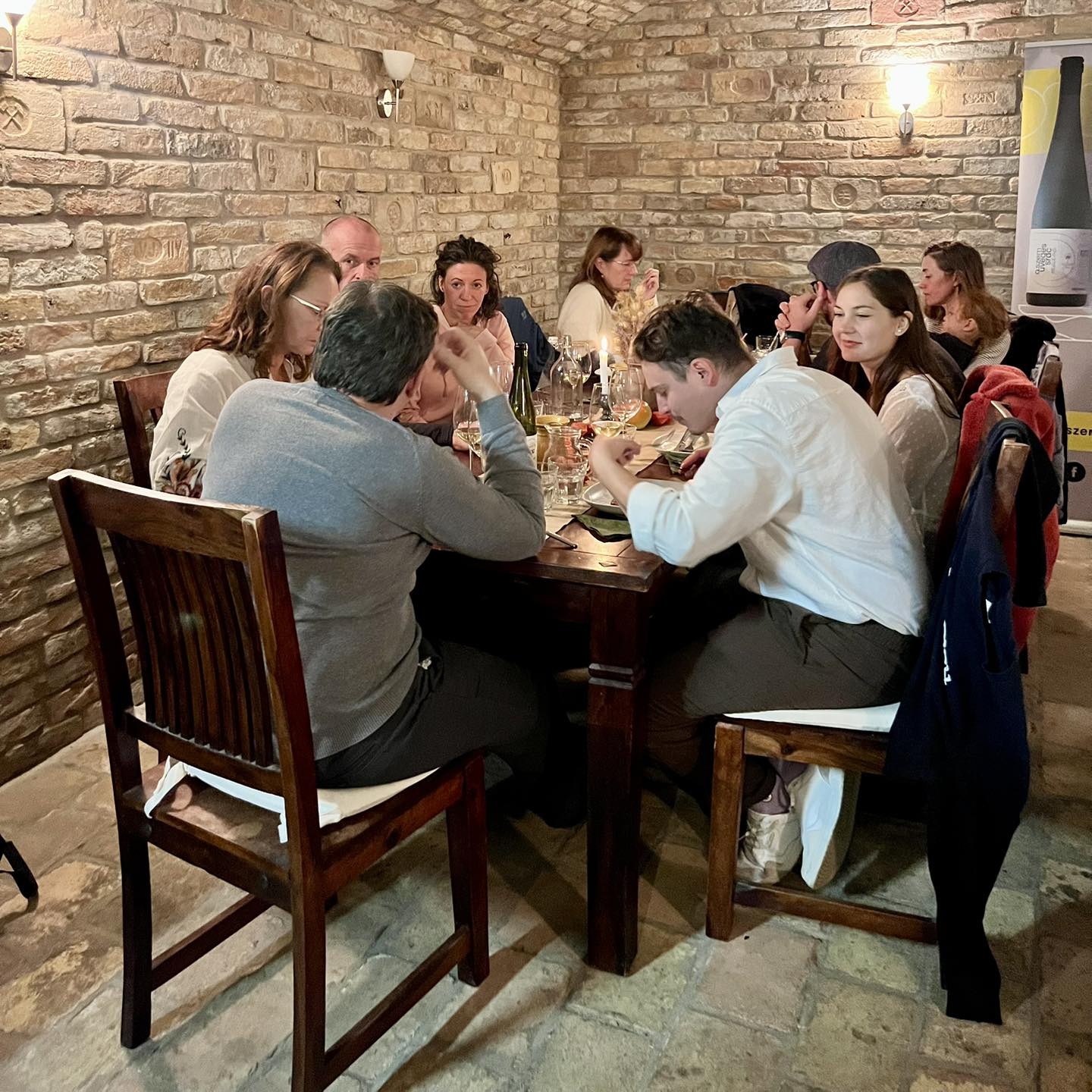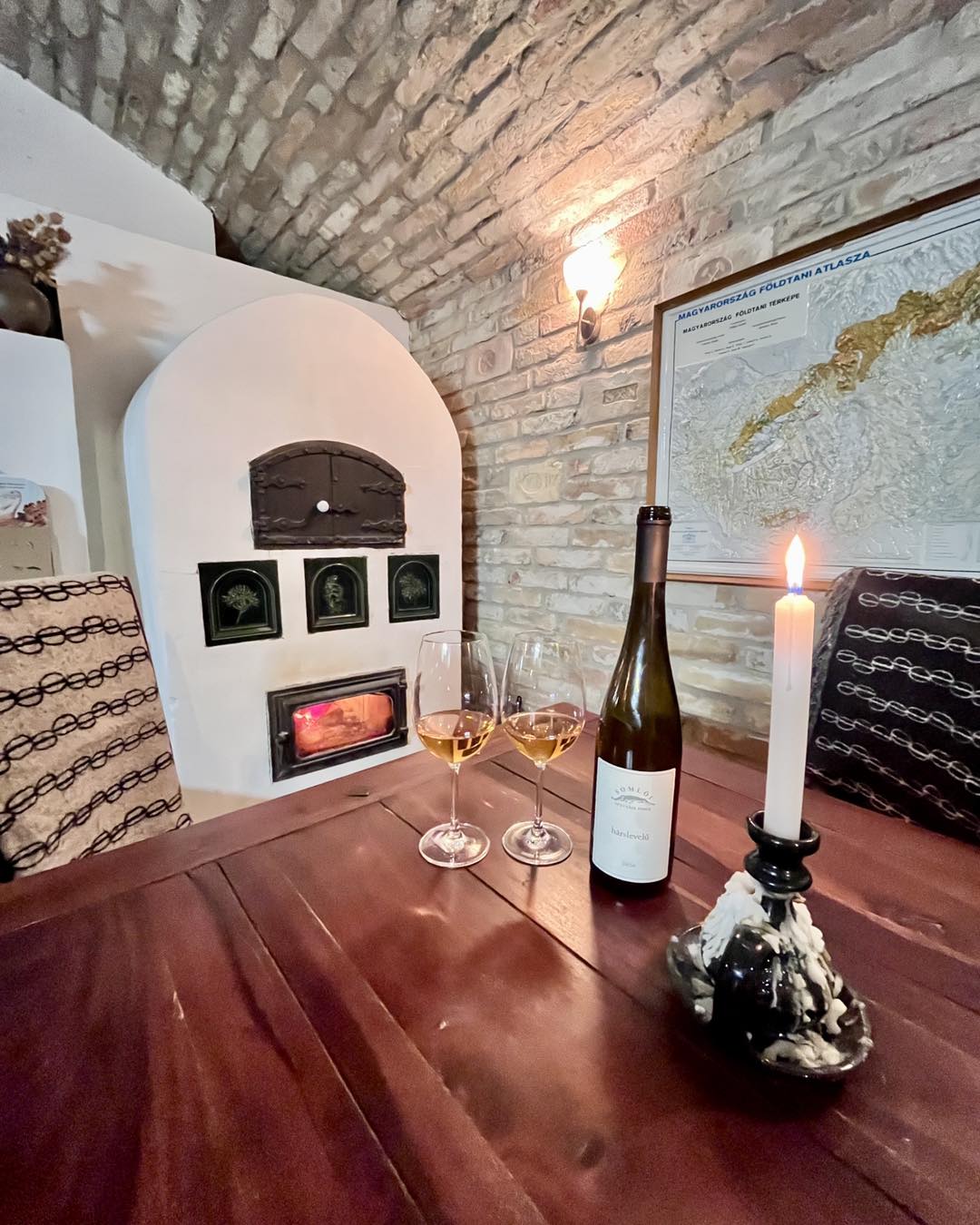 Néhány jól elhelyezett pecsétes tégla a falban, amit nézegethetünk, beszélgethetünk az eredetükről borozgatás közben. Gyönyörű kortörténeti emlékek.