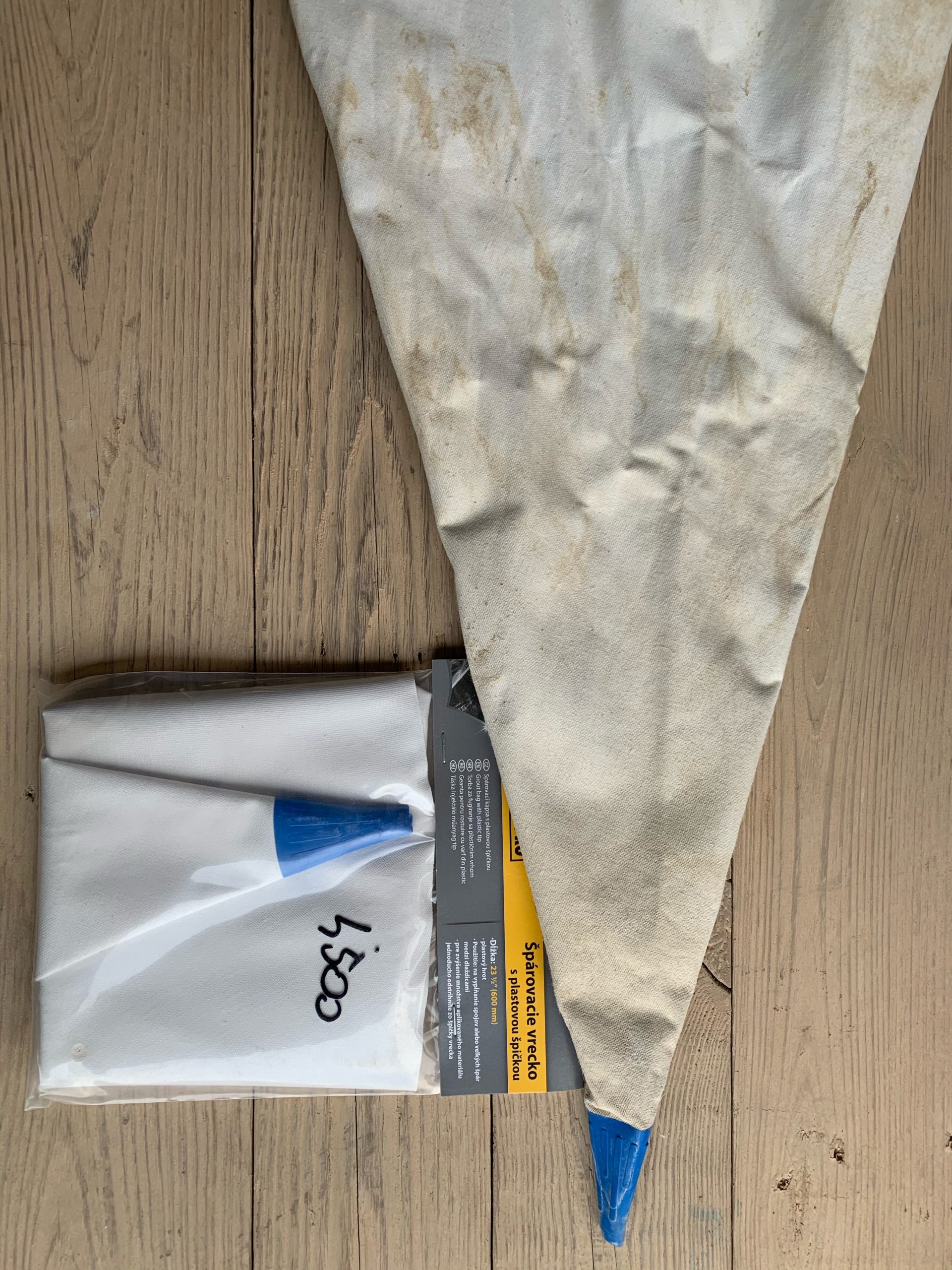 Fugázó anyagnak a ragasztót használtuk. Olcsóbb mintha fugázót vettünk volna… A színe kb. 1-2 hét száradás után pedig nagyon szép világos szürke lesz, ami szintén nem sötétíti a falat! „