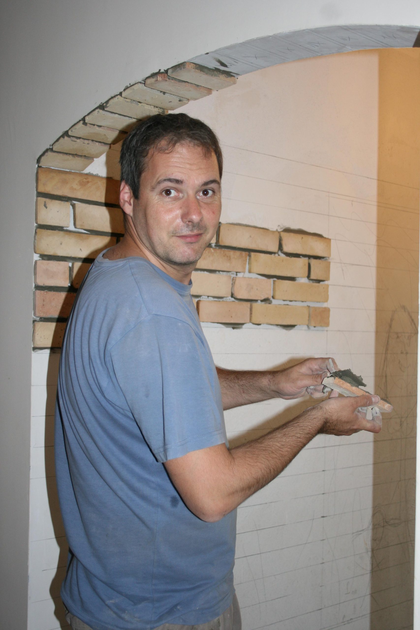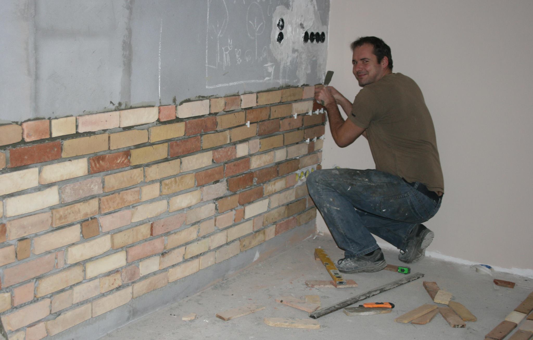 „Azzal megsokszoroztuk a munkát, hogy nem töröltük le azonnal a téglaszeleteket. Amikor még csak 1 napos volt a ragasztó, egyszerű vizes szivacsos áztatással le lehetett szedni, de később már csak kefével, meg mindenféle kaparó eszközzel.