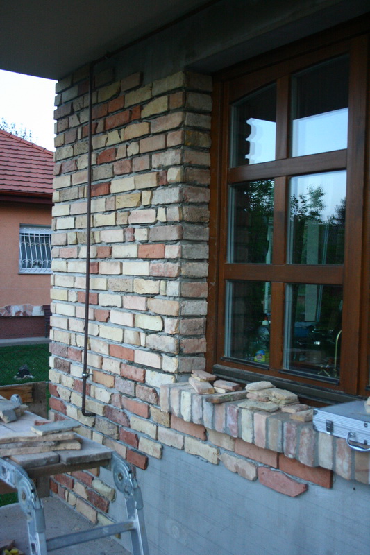 A téglaszeleteket gondosan válogattuk, ha kellett egy kicsit faragtunk még belőle flex-el.