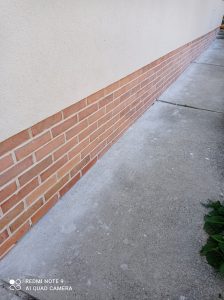 Volt már példa arra is, hogy a külső tégla szélből készült hasonló burkolat, itt is nagyméretű külső szeleteket láthatunk.